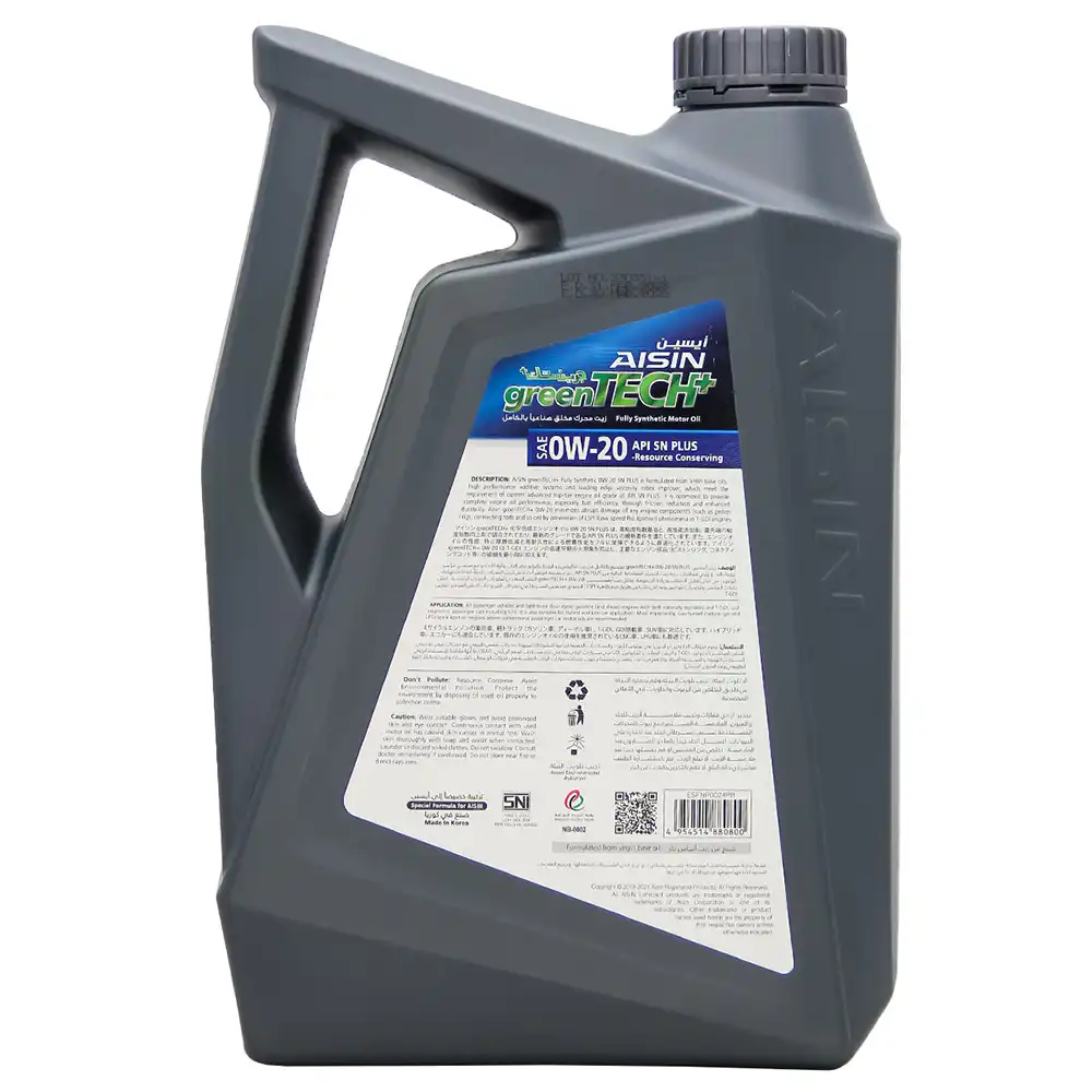 روغن موتور آیسین 0W20 SN Plus در حجم های 1لیتری و 4 لیتری با استاندارد API SN plus به سفارش و با استاندارد آیسین ژاپن در کره جنوبی ساخته شده است.