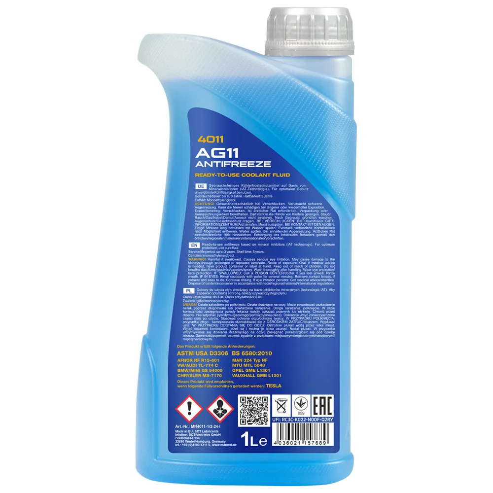 مایع خنککننده مانول AG11 4011 نیاز به تعویض مداوم ندارد و برای مدت طولانی کارایی خود را حفظ میکند.