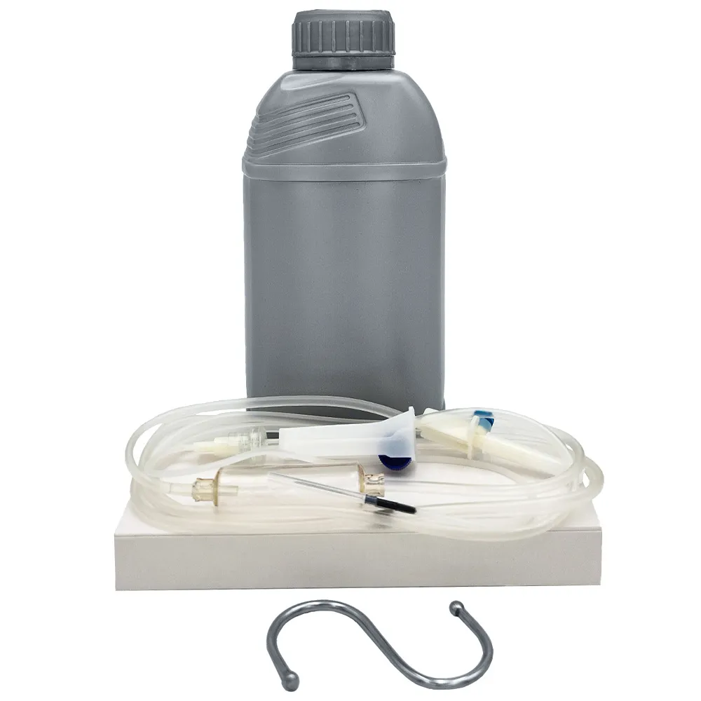 سوزن دستگاه را به شلنگ لاستیکی ورودی هوا وارد کرده و قوطی را وارونه آویزان کنید.