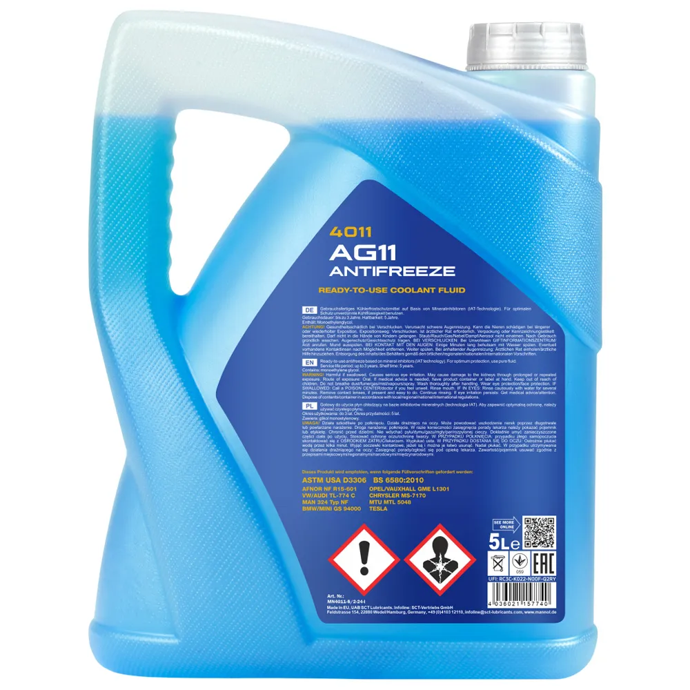 مایع خنککننده مانول AG11 4011 نیاز به تعویض مداوم ندارد و برای مدت طولانی کارایی خود را حفظ میکند.